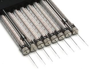 Estas son agujas de reemplazo para la jeringa Gel Loading de ancho fijo. Las agujas están disponibles en diámetros externos de 0.2, 0.3 y 0.4 mm. Las agujas de 0.2 y 0.3 mm están revestidas con una aguja de calibre más grueso por lo que solo una pequeña sección de la aguja de calibre fino queda expuesta.